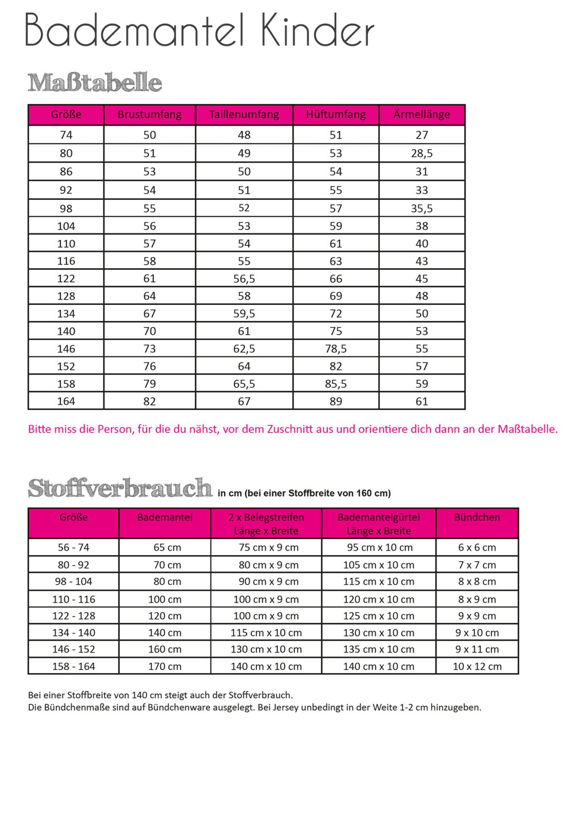 Das Schnittmuster gibt es in den Größen 56 bis 164.