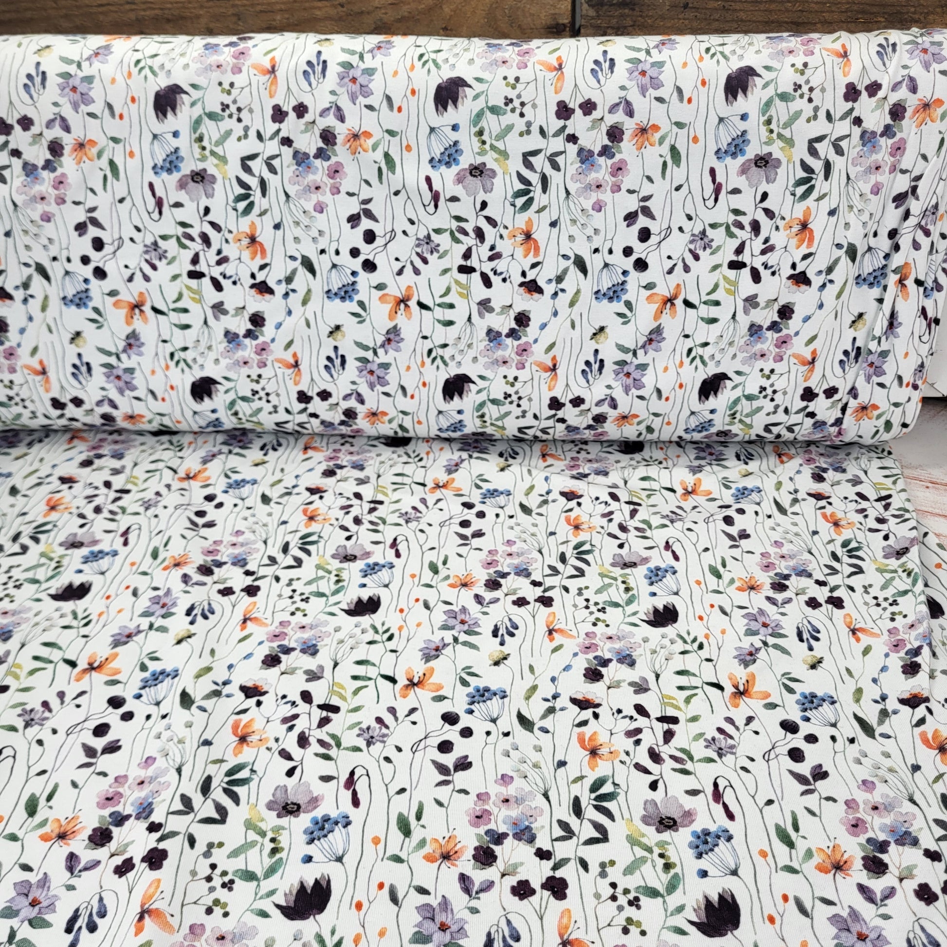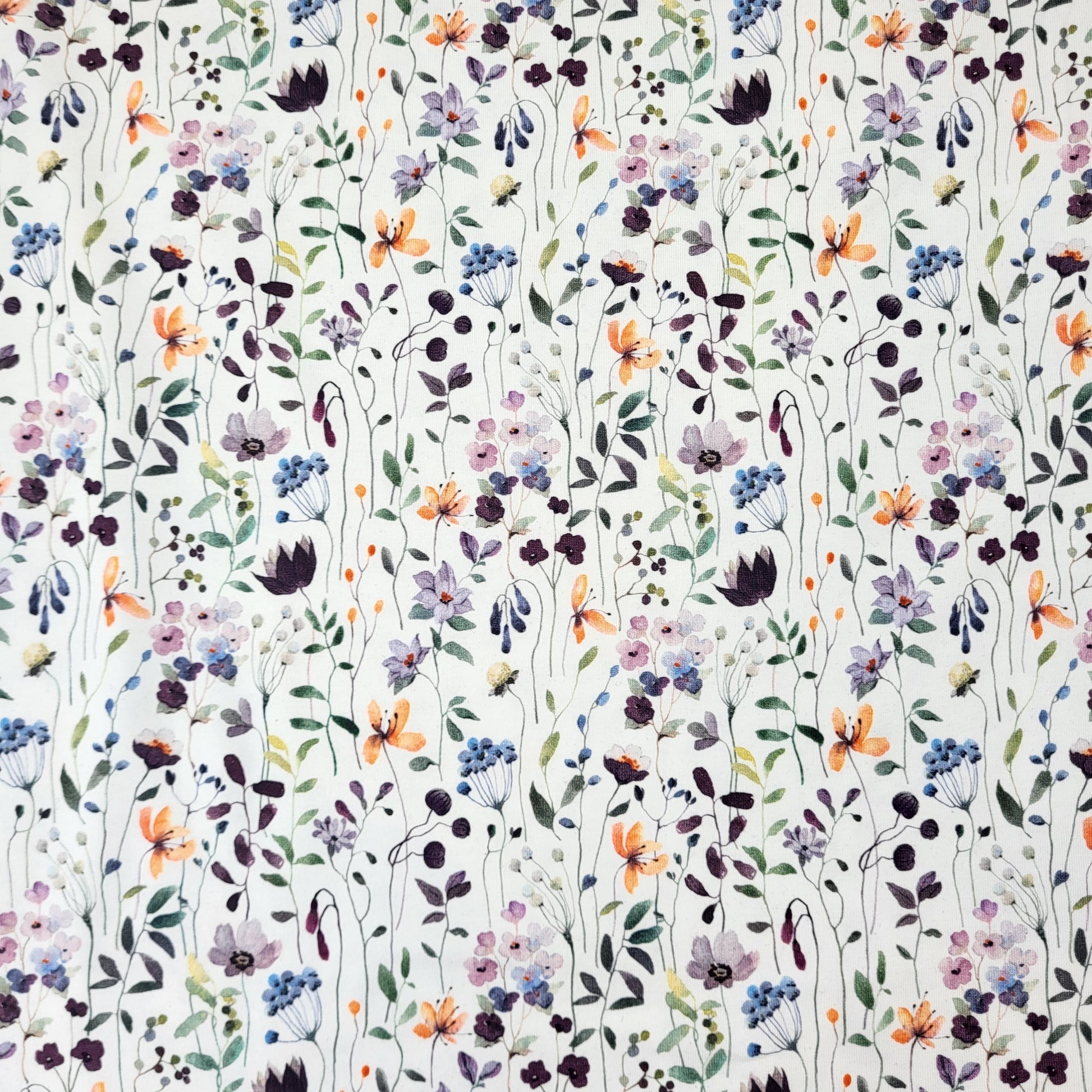Zart, stilvoll und einfach wunderschön: Unser exklusiver Eigenproduktions-Jersey „Kleine Blumen in Beere & Lila“ verzaubert mit einem feinen, harmonischen Blütenmuster.