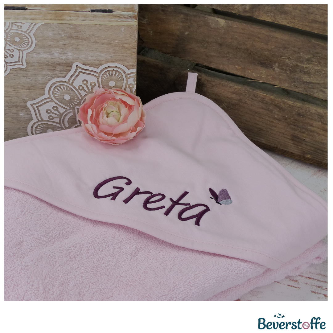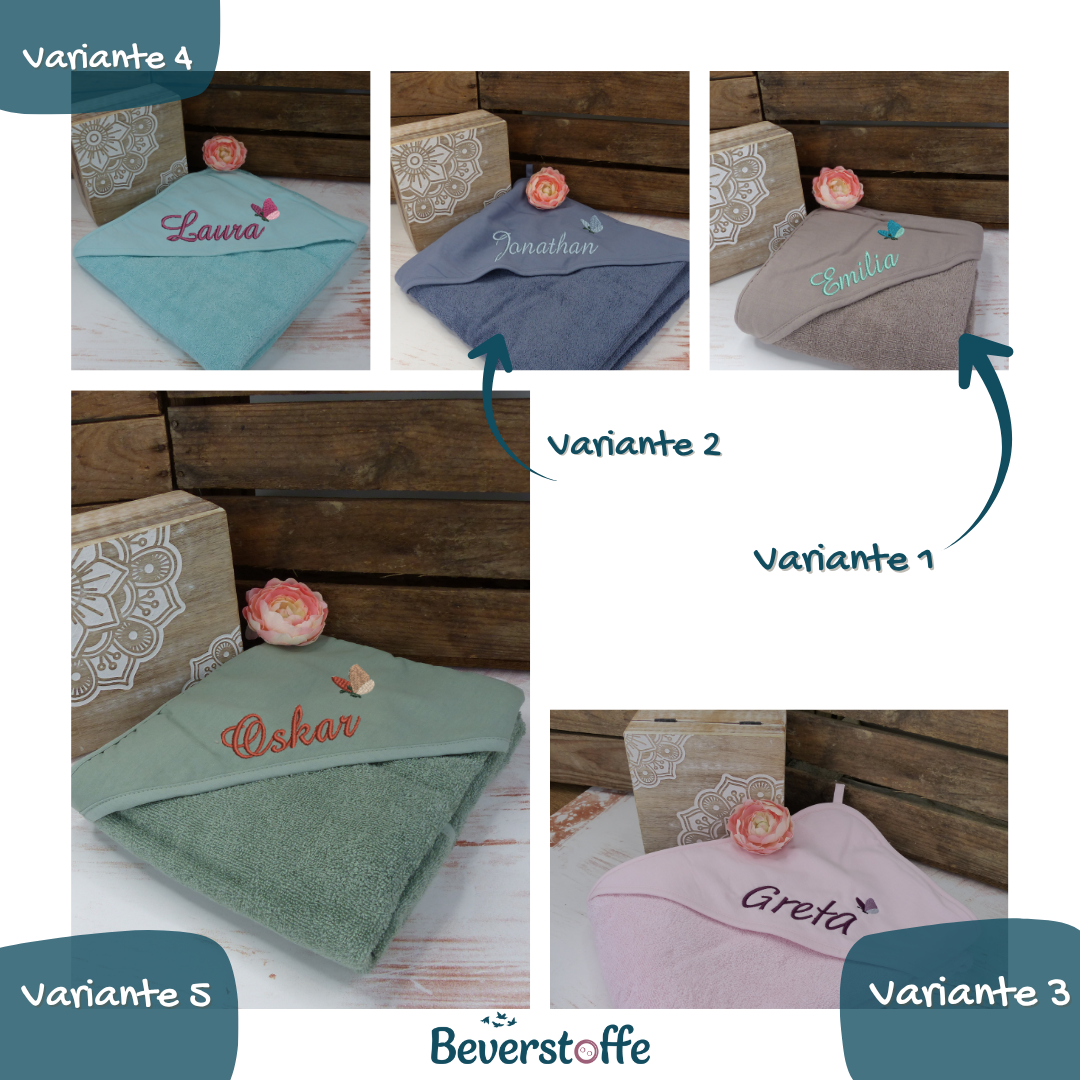 Kapuzenhandtuch mit Namen und Schmetterling