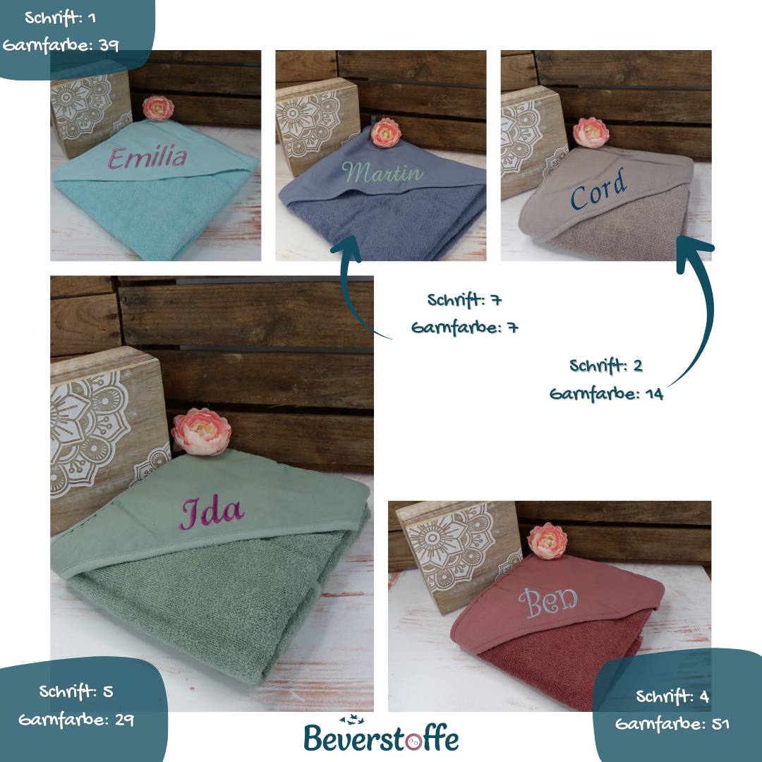 Dank der individuellen Bestickung mit Namen oder einem liebevollen Motiv wird jedes Handtuch zu einem ganz besonderen Unikat – ideal als Geschenk zur Geburt, Taufe oder einfach als praktischer Alltagsbegleiter.