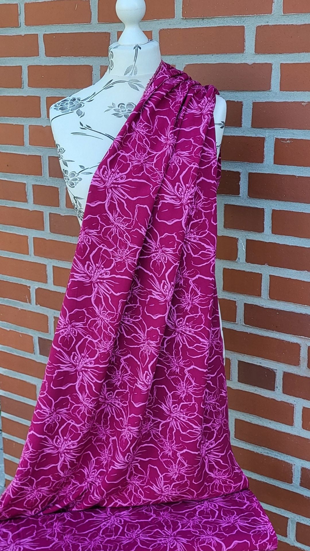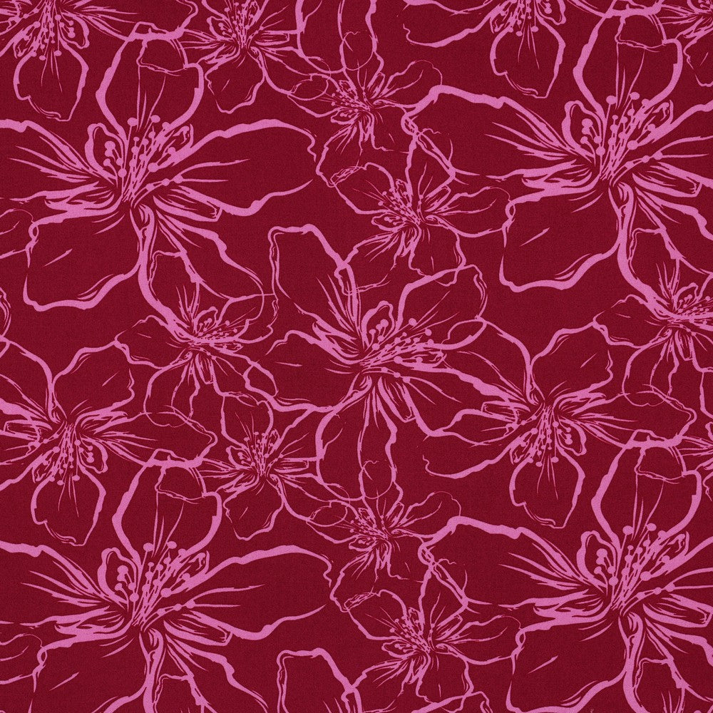 Dieser nachhaltige Lenzing™ ECOVERO™ Stoff beeindruckt mit einem zeitlos schönen Blumenmuster in Rosa auf einem beerefarbendem Hintergrund. Der Stoff ist angenehm weich, fließend und überzeugt durch seine umweltschonende Herstellung. Ideal für alle, die Wert auf stilvolles Design und verantwortungsbewusste Materialien legen.