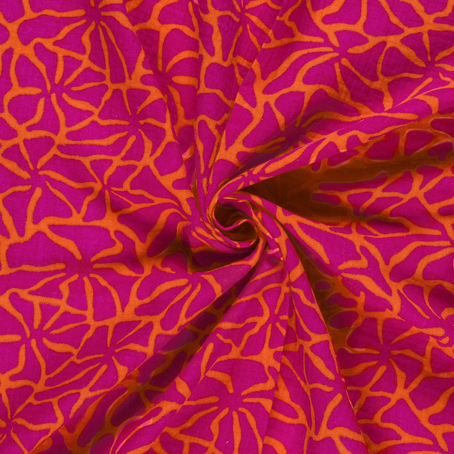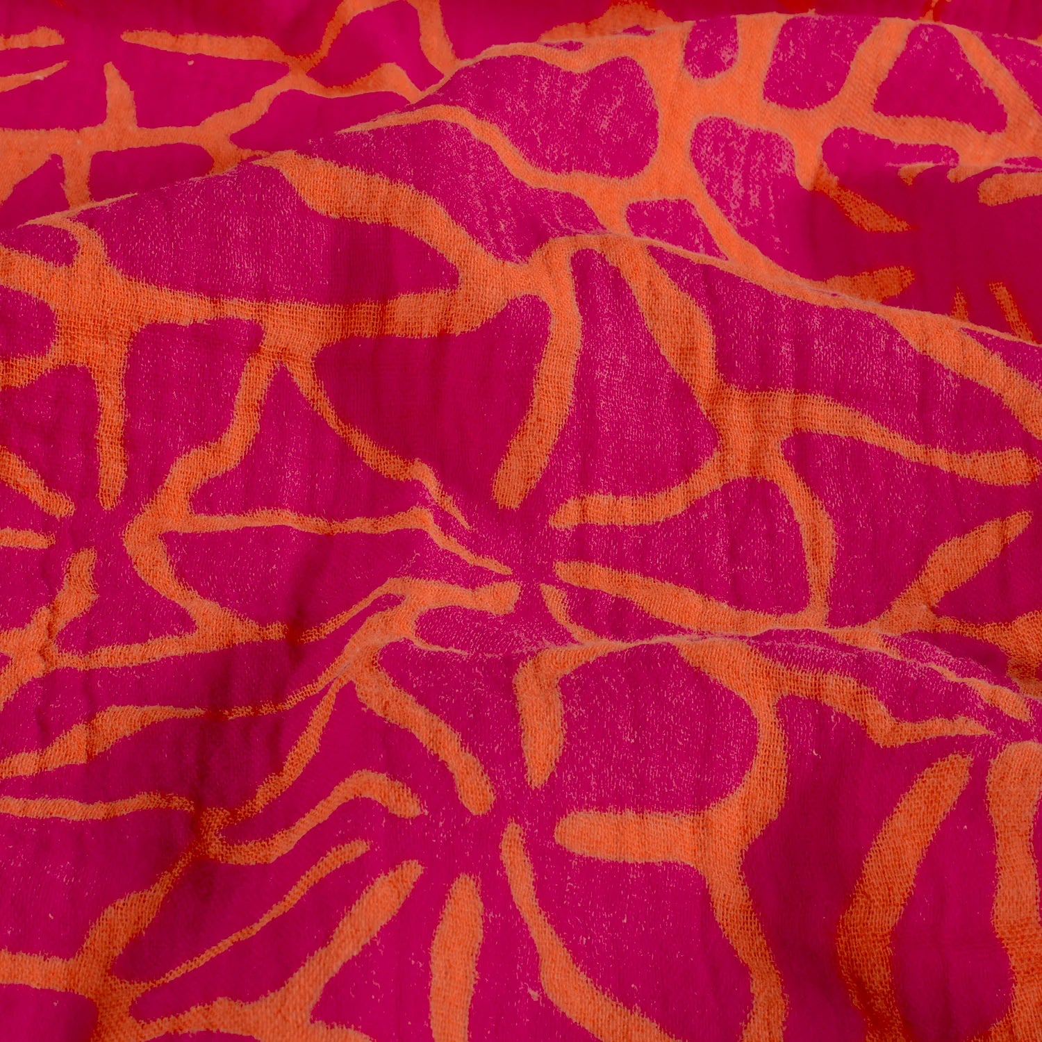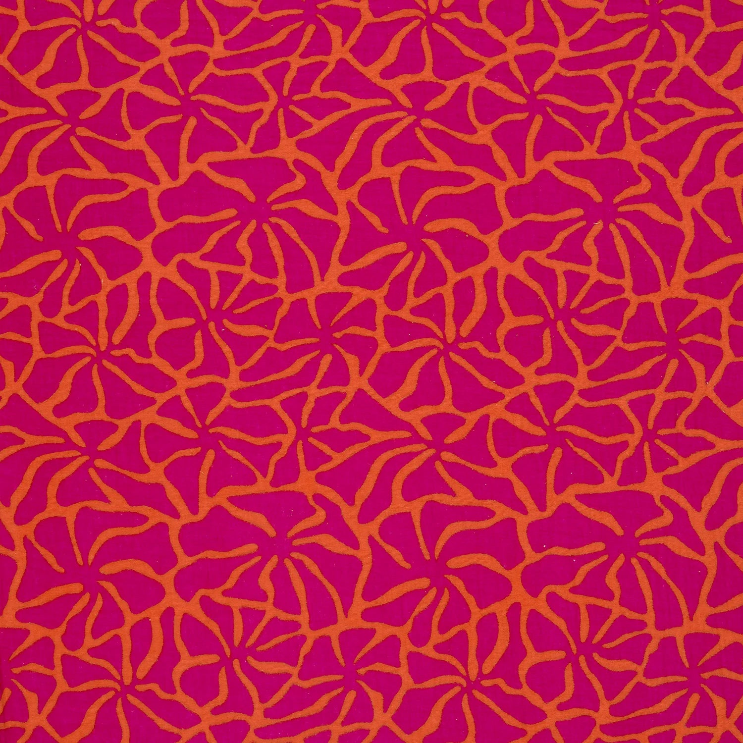 Der farbenfroher Musselin-Stoff mit Blumenmuster bringt pure Lebensfreude in jedes Nähprojekt. Die harmonische Kombination aus leuchtendem Pink und warmem Orange verleiht dem Stoff eine frische, sommerliche Ausstrahlung und macht ihn zu einem echten Blickfang.