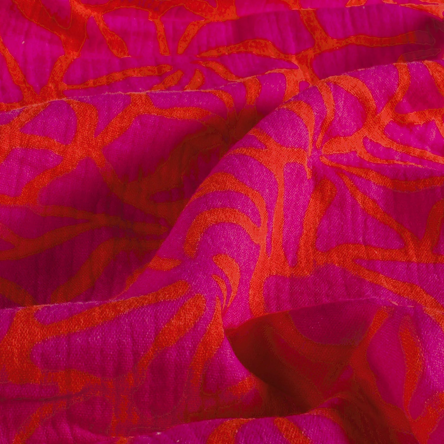 Der farbenfroher Musselin-Stoff mit Blumenmuster bringt pure Lebensfreude in jedes Nähprojekt. Die harmonische Kombination aus leuchtendem Pink und warmem Orange verleiht dem Stoff eine frische, sommerliche Ausstrahlung und macht ihn zu einem echten Blickfang.