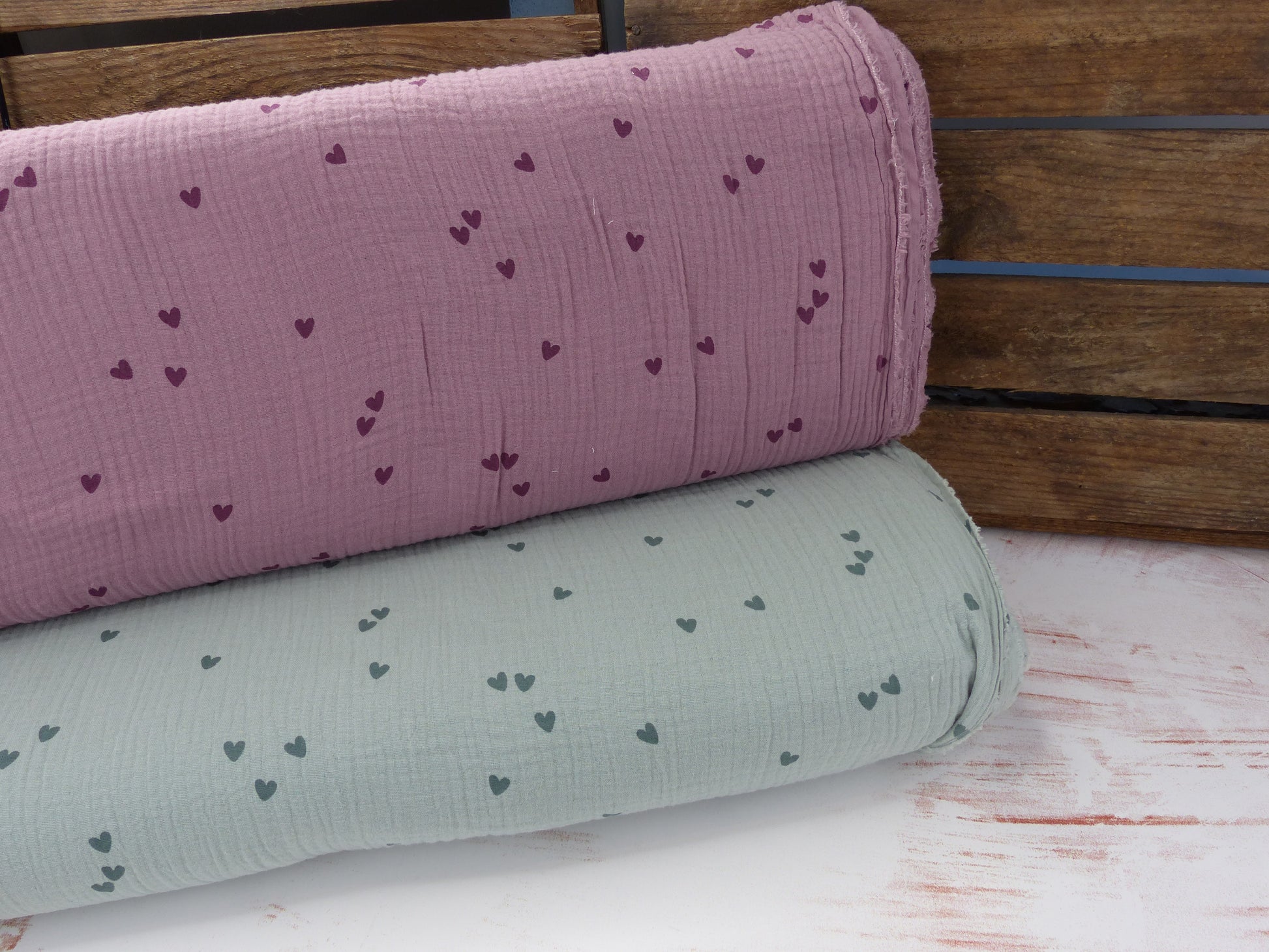 Musselin, Herzchen Dusty Green