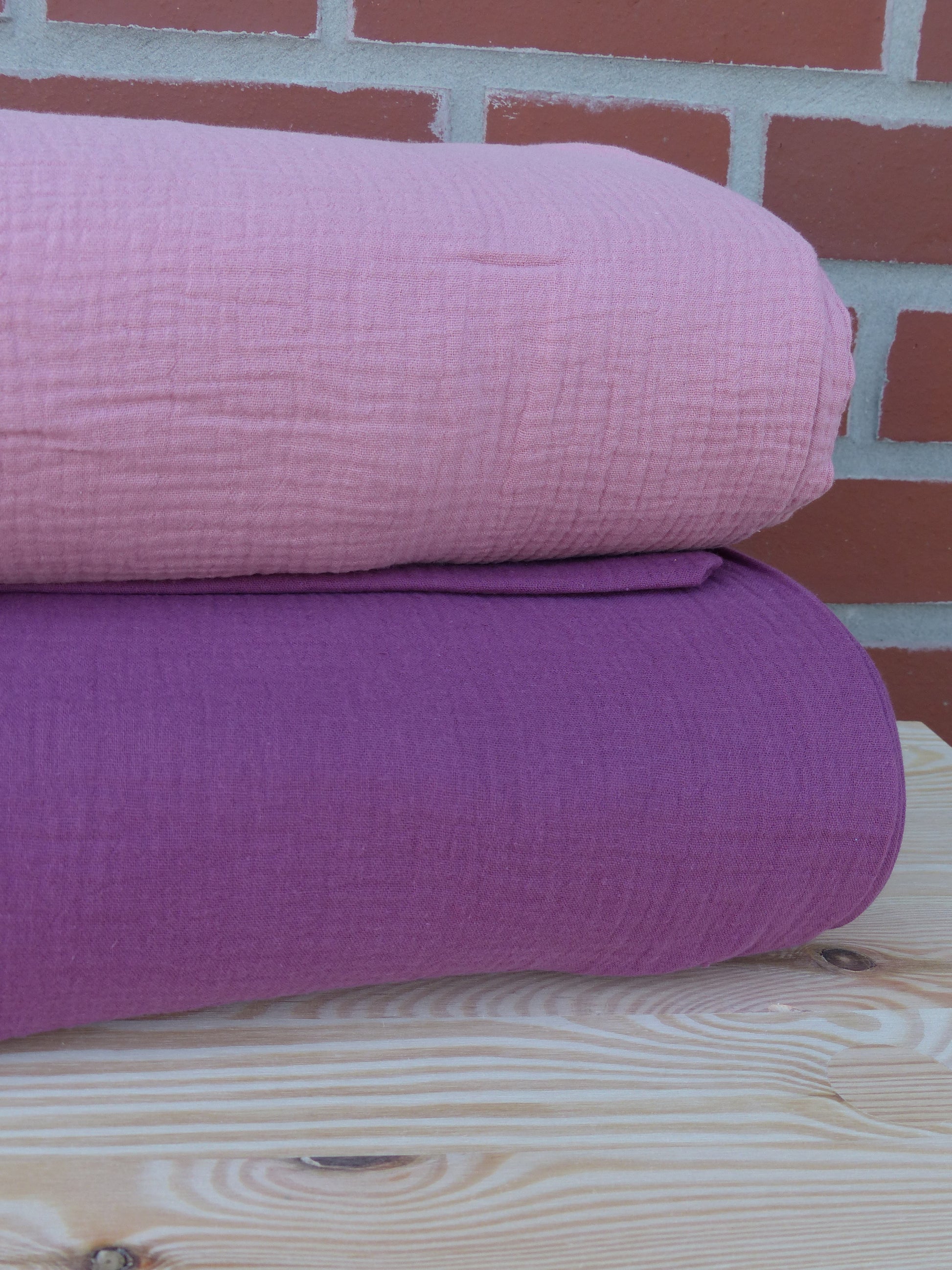 Die doppellagige Webart sorgt für eine angenehme Stabilität bei gleichzeitig weichem, luftigem Fall. Der Stoff ist atmungsaktiv, hautfreundlich und besonders angenehm zu tragen – ideal für Groß und Klein. Dank seiner natürlichen Struktur ist Bügeln meist nicht notwendig, was ihn auch im Alltag besonders pflegeleicht macht.
