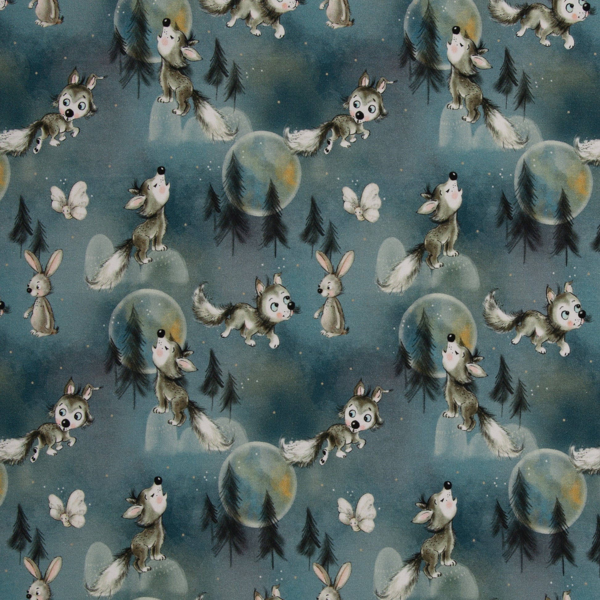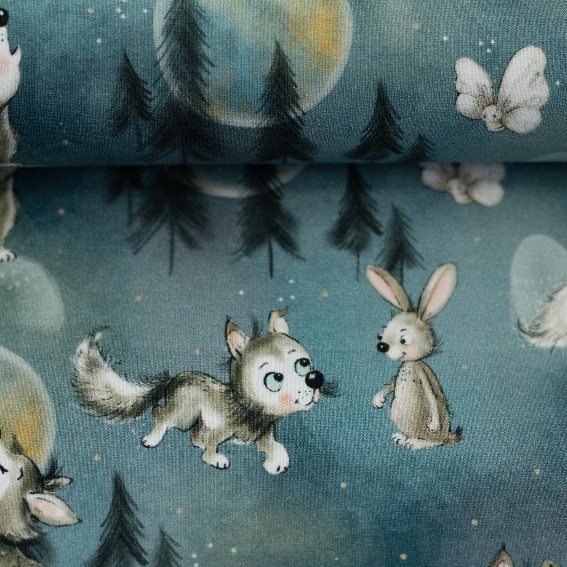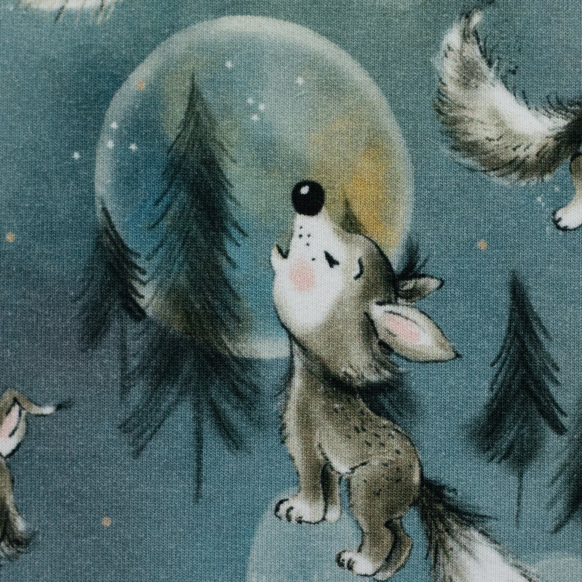 Stoffpaket Wolf Smaragd mit Waffeljersey